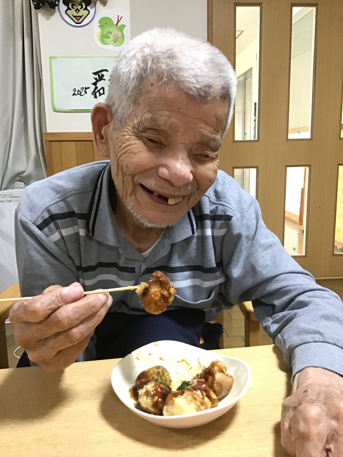8月25日 皆さんに手伝って頂き、たこ焼きを作りました。